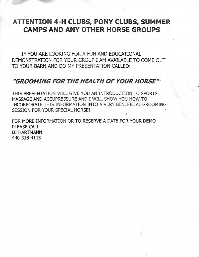 Here is a fun and educational presentation offered to different equine facilities and groups.